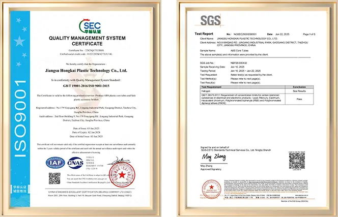 Kami secara konsisten mematuhi filosofi bisnis “Mengutamakan Kualitas, Berbasis Inovasi, Berpusat pada Pelanggan,” terus meningkatkan kualitas produk dan standar layanan sambil memperluas pangsa pasar kami. Kami berkomitmen untuk memberikan kontribusi yang lebih besar bagi kemajuan industri tabung inti plastik ABS. Kami berharap dapat berkolaborasi dengan mitra dari semua sektor untuk bersama-sama menciptakan masa depan yang lebih cerah! Jika Anda tertarik dengan produk kami, jangan ragu untuk menghubungi kami kapan saja. Kami berdedikasi untuk melayani Anda dengan sepenuh hati!